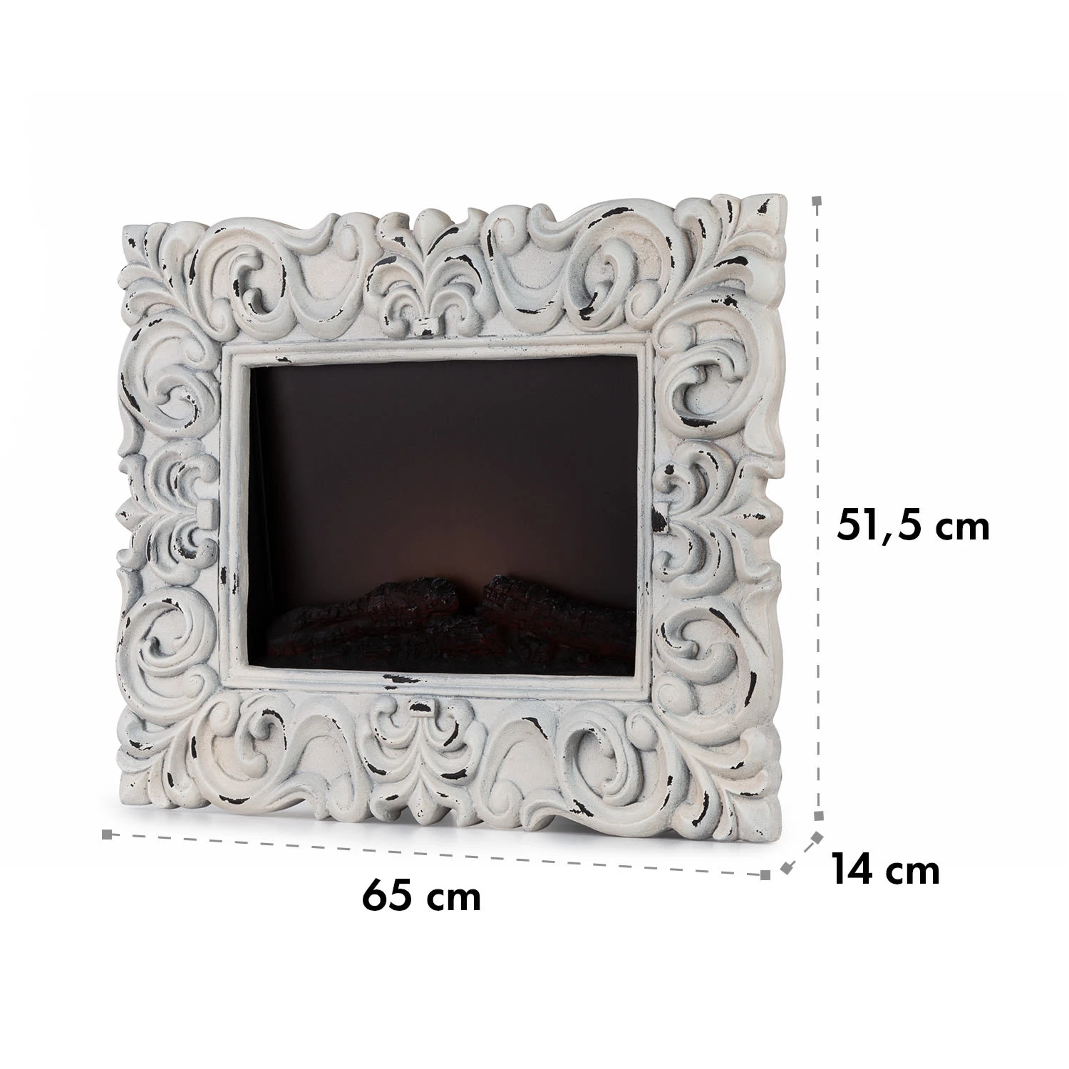 - Maße Kamin: 54 x 47 x 14 cm (BxHxT)