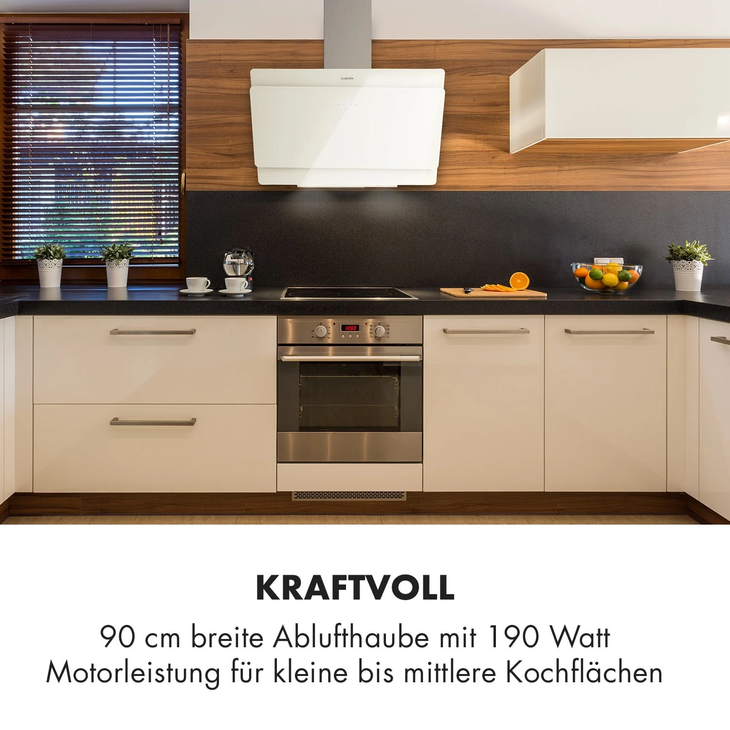 Beste Luft in kleinen bis mittelgroßen Küchen: Die Klarstein Aurica 90 Dunstabzugshaube ist ein kraftvolles Glanzstück. Sie beseitigt mit 190 Watt Motorleistung in drei Geschwindigkeiten und bis zu 600 m³/h Abluftleistung schwungvoll Dampf und Dunst beim Kochen. Ein zuschaltbares Licht sorgt für gute Sichtverhältnisse und die Konstruktion für Bewegungsfreiheit am Herd. Die Klarstein Aurica 90 Wandabzugshaube ist leistungsstarker, gläserner Luxus für die Küche.
