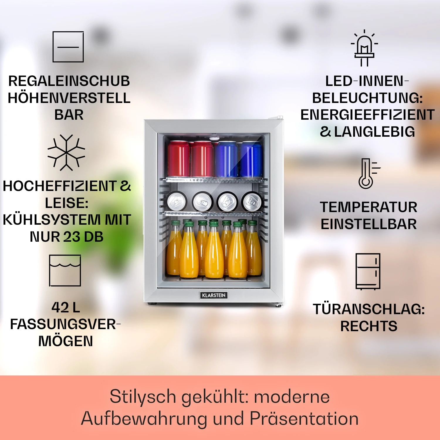 Brooklyn 42 Mini-Kühlschrank Glastür LED Ablage