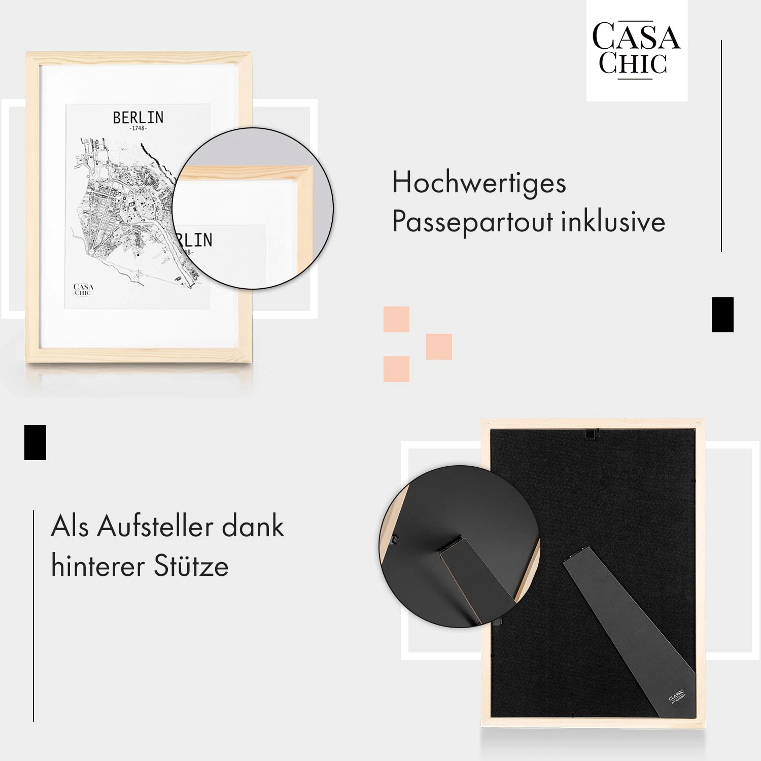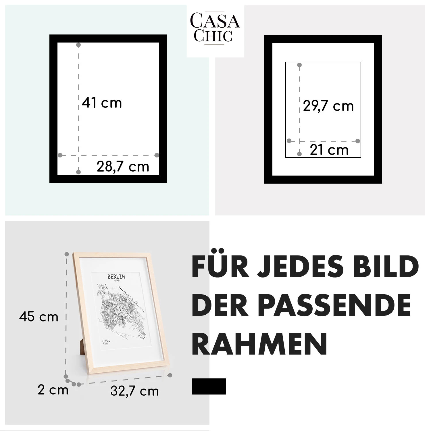 Mit dem schlichten Edinburgh Echtholz-Bilderrahmen von Casa Chic by blumfeldt kommen deine Fotos und Bilder sowohl im Hoch- als auch im Querformat ideal zur Geltung. Gestalte wunderschöne Wandcollagen oder arrangiere deine Lieblingsfotos auf dem Sideboard oder im Regal. Mit den Edinburgh Rahmen bist du flexibel. Das mitgelieferte Passepartout überlässt dir die Wahl des passenden Bildausschnitts. Sein breites Rahmenprofil schenkt einen edlen Kontrast und die Frontscheibe aus Plexiglas schützt vor Staub und Schmutz.