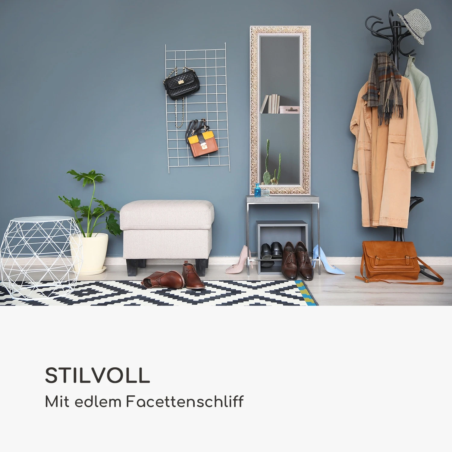 Der Greenford Spiegel von Casa Chic by blumfeldt im Vintage-Look erzeugt in jedem Raum einen Wow-Effekt. Sein Holzrahmen mit floralem Muster ist im dezenten Shabby-Chic-Design gearbeitet und umschließt die große Spiegelfläche mit Facettenschliff perfekt. Dabei kann er sowohl als Standspiegel oder auch als aufgehängter Wandspiegel genutzt werden. Ob im Querformat über dem Sofa oder aufgestellt im Hochformat im Schlafzimmer, mit dem Greenford Spiegel zieht ein Hauch von französischer Eleganz bei dir zu Hause ein.