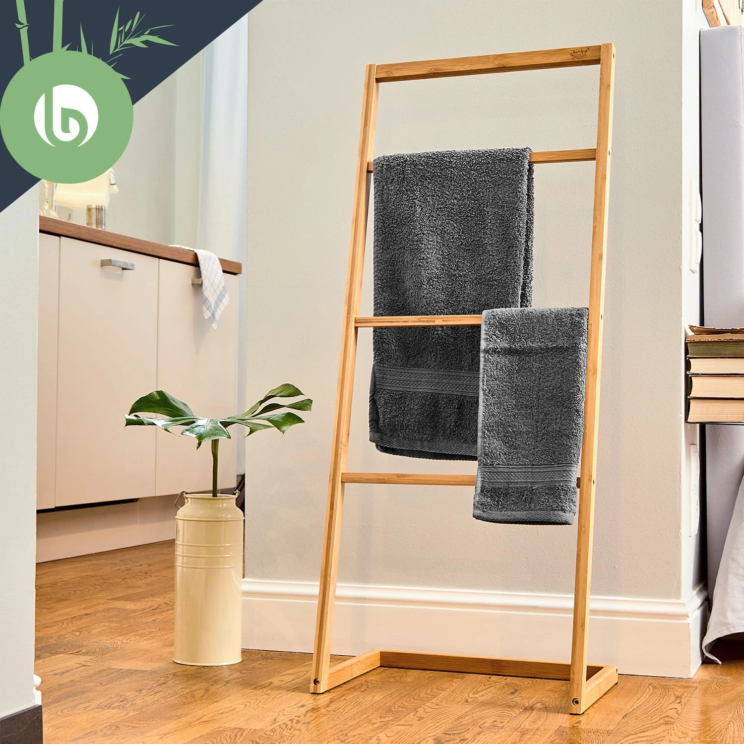 Die ausgefallene Handtuchleiter von blumfeldt lässt deine Badetücher perfekt trocknen und macht dein Bade- oder Wohnzimmer zu einem modernen Ort.