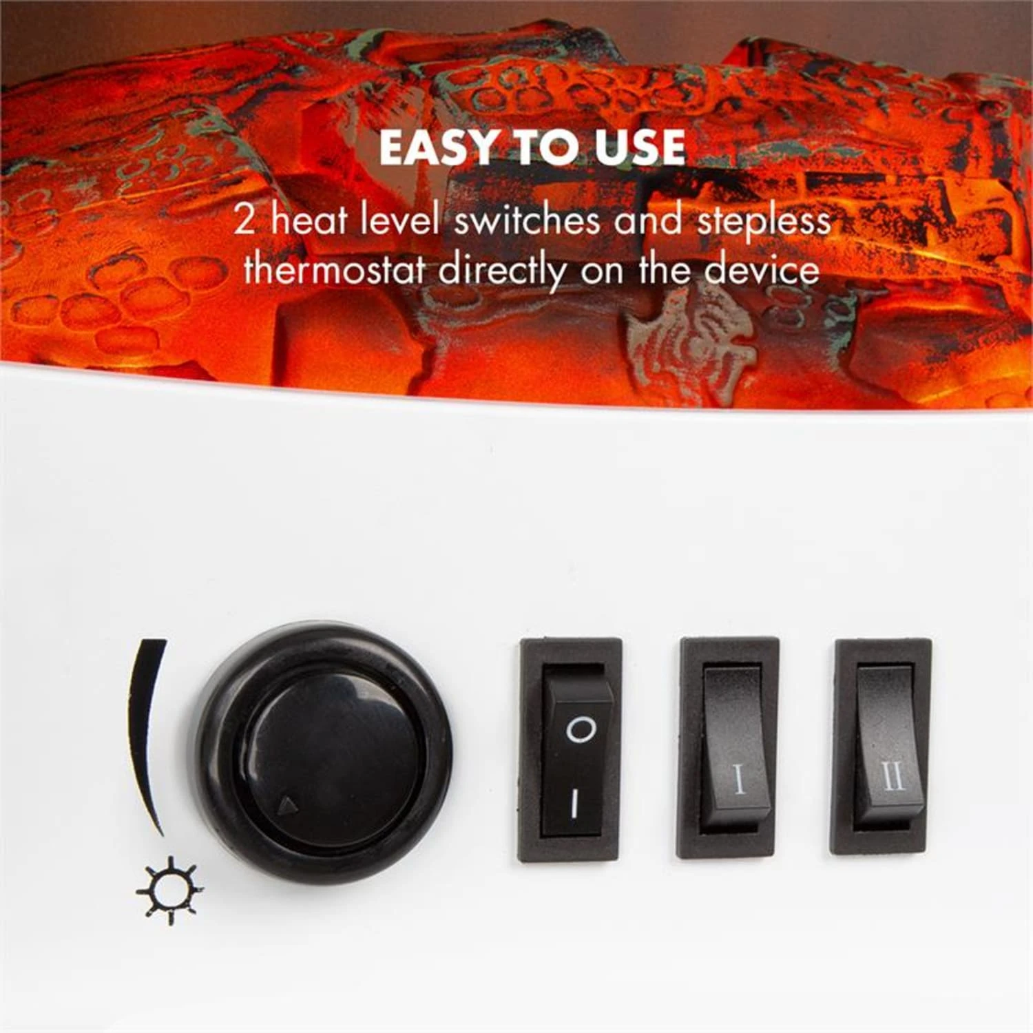 Der Elektrokamin Meran von Klarstein zaubert realistische Flammenillusionen in jedes Zimmer. Das sanfte Licht ahmt täuschend echt Flammen und glimmende Holzscheite nach und verbreitet sofort eine wohlige Atmosphäre. Die Flammen züngeln völlig unabhängig von der integrierten Heizung. Für angenehme Wärme sorgt auf Wunsch die zuschaltbare, 2-stufige Heizfunktion. Über einen Drehregler lässt sich die Wärme per stufenlosem Thermostat anpassen. Die Bedienung des Elektrokamins erfolgt dabei einfach und direkt am Gerät: Die Schalter hierfür sind dezent hinter der Ofentür verborgen. Das einzigartige Design des Meran Kamins im Gusseisen-Stil mit großzügigem Sichtfenster schafft überall eine gemütliche Umgebung.