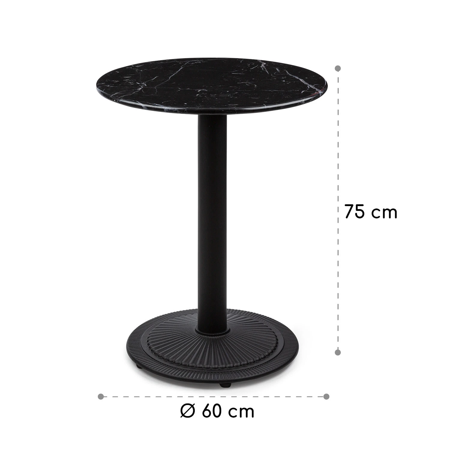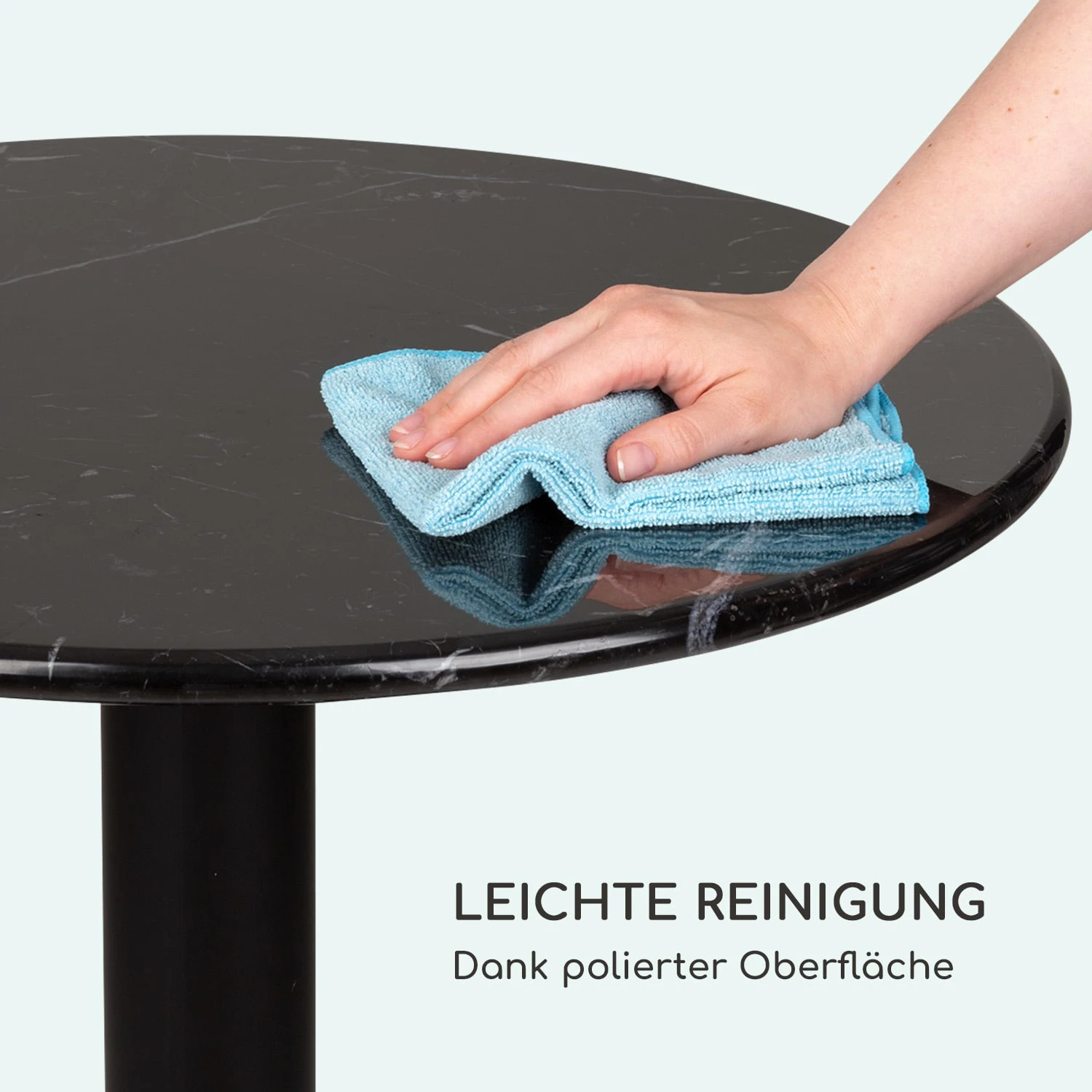 Luxuriöser Genuss mit Jugendstil-Atmosphäre – das verspricht dir der blumfeldt Patras Pearl Gartentisch und zieht dabei alle Register: Die 60 cm durchmessende Tischplatte ist aus sauber poliertem, echtem Marmor. So ist dieser Tisch ein Unikat – denn Maserung und Färbung des Gesteins bringen immer wieder einen ganz eigenen Charakter hervor und verleihen jedem Umfeld neuen Glanz. Diese prachtvolle Erscheinung wird durch den stabilen gusseisernen Standfuß mit Verzierungen zusätzlich verstärkt. Egal ob für das Frühstück auf dem Balkon, zum geselligen Kaffee auf der Terrasse oder das romantische Candle-Light-Dinner unterm Sternenhimmel: Der blumfeldt Patras Pearl Marmortisch sorgt für ein außergewöhnliches Ambiente.