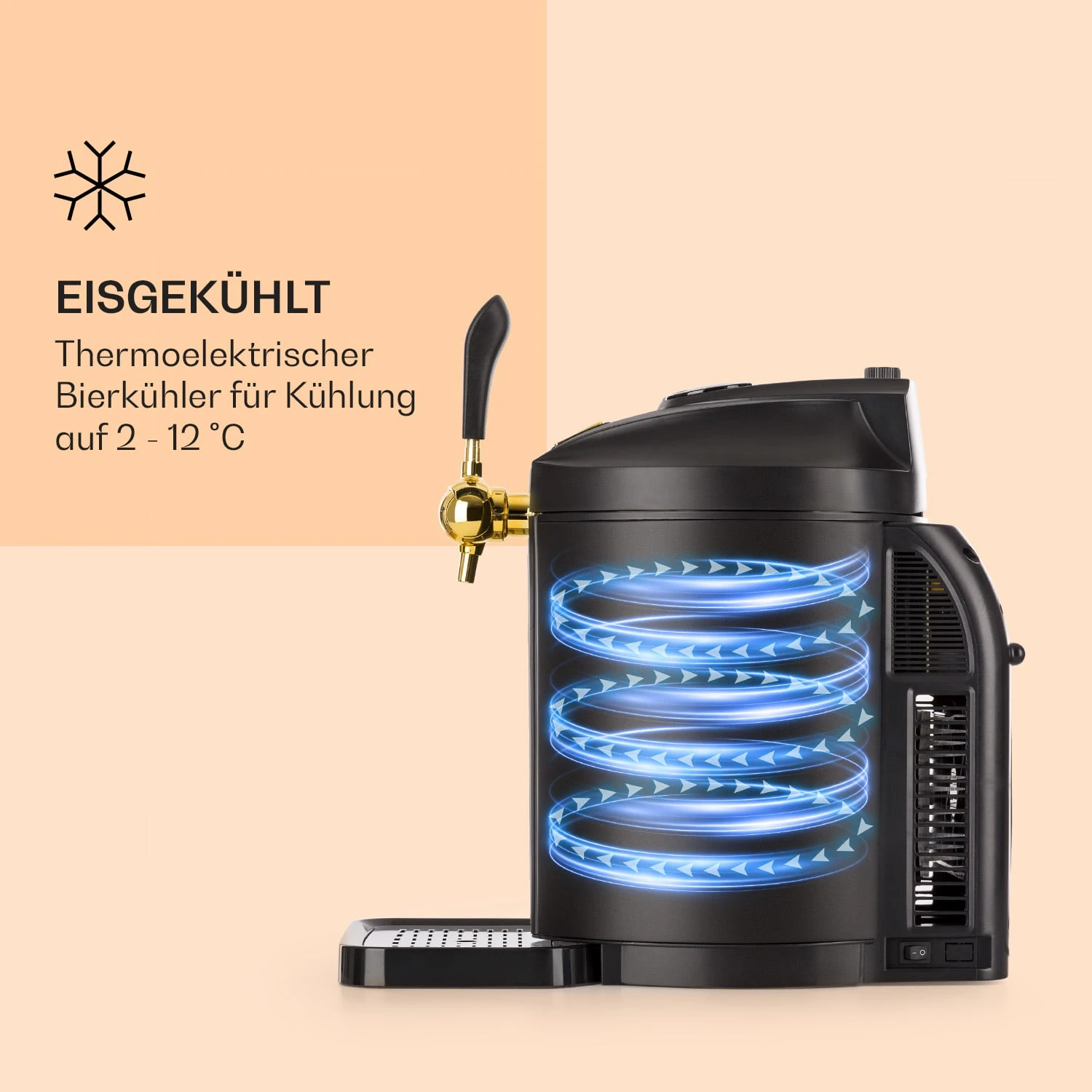 Die Klarstein Skal Bierzapfanlage sorgt für gekühlten Biergenuss aus allen 5 Liter Fässern. Dank CO2-Gaskartuschen-Drucksystem erhält der Gerstensaft immer den richtigen Druck für eine herrliche Schaumkrone. Damit du auch Heineken-Fässchen – für die kein CO2-Druck nötig ist – anzapfen kannst, wird ein entsprechender Anschlussadapter gleich mitgeliefert.