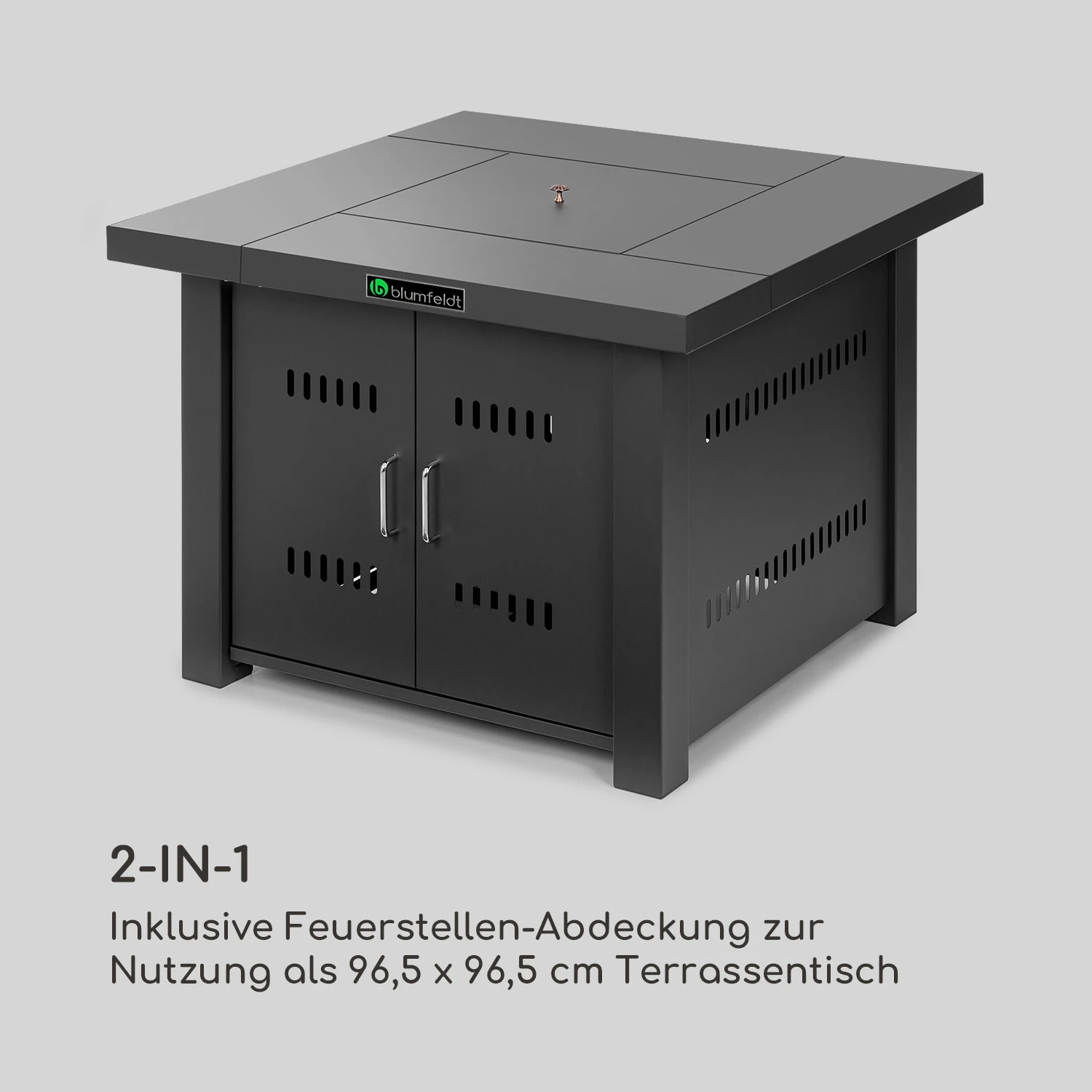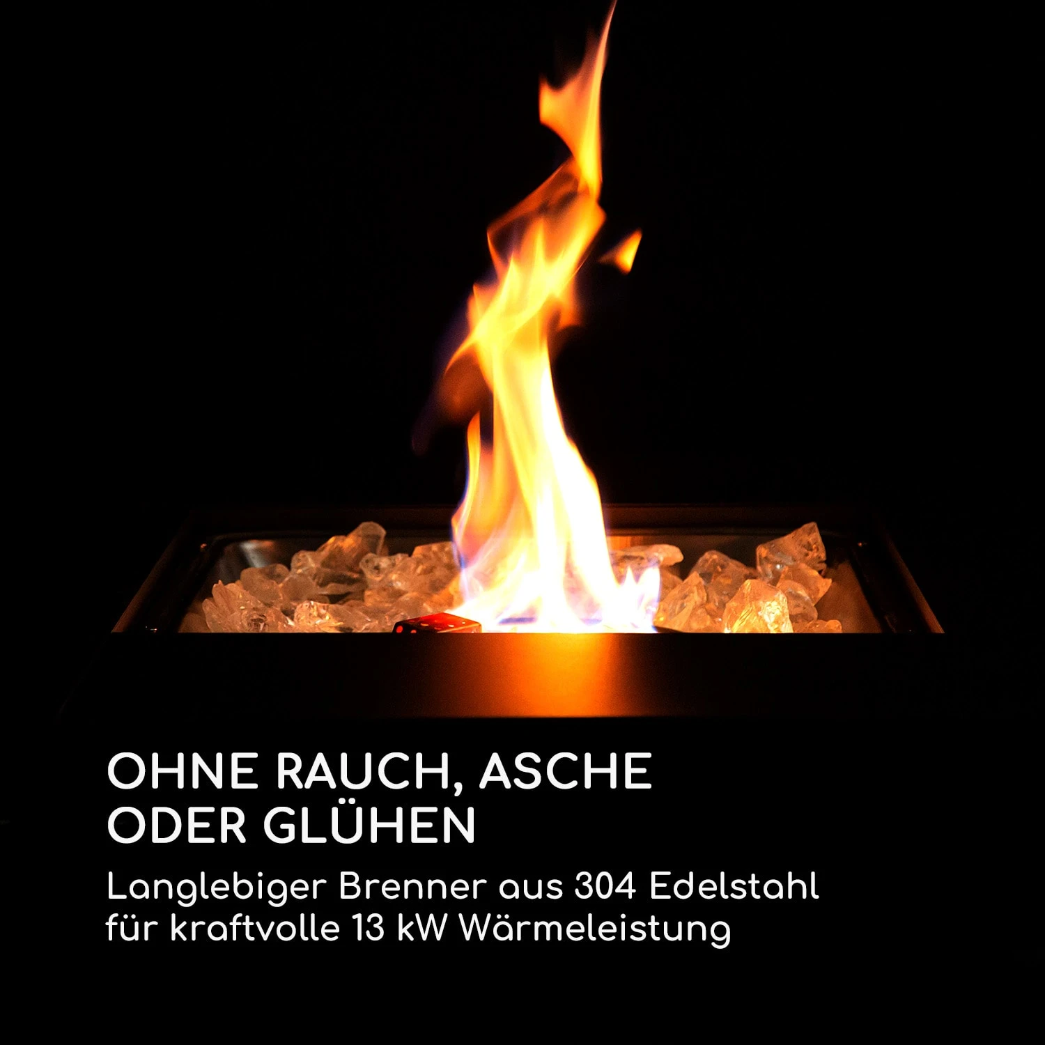 Die blumfeldt Sorrento Gasfeuerstelle bringt nicht nur wohlige Wärme auf die Terrasse oder in den Garten, sondern ist auch mit ihrer Zweitfunktion als großer Terrassentisch eine praktische Ergänzung für den Aufenthalt im Freien.