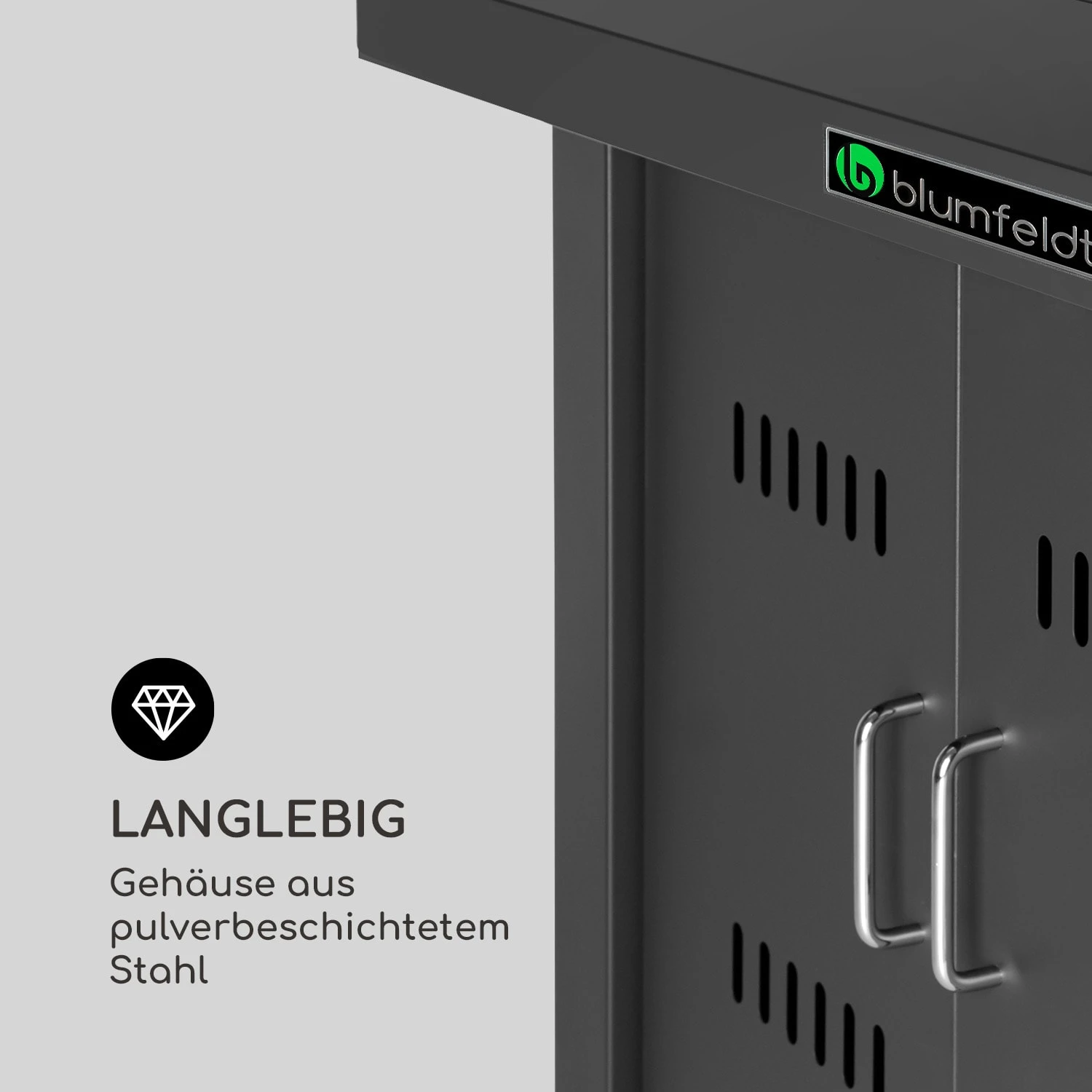 Wird die Feuerstelle gerade nicht benötigt, wird sie dank ihrer praktischen Abdeckung zum großen 96,5 x 96,5 cm Terrassentisch und leistet auch an warmen Tagen ihren Dienst. Damit die Freude am blumfeldt Sorrento Terrassenheizgerät lange erhalten bleibt, ist er aus pulverbeschichtetem Stahl gefertigt und so resistent gegen Rost und Witterung.
