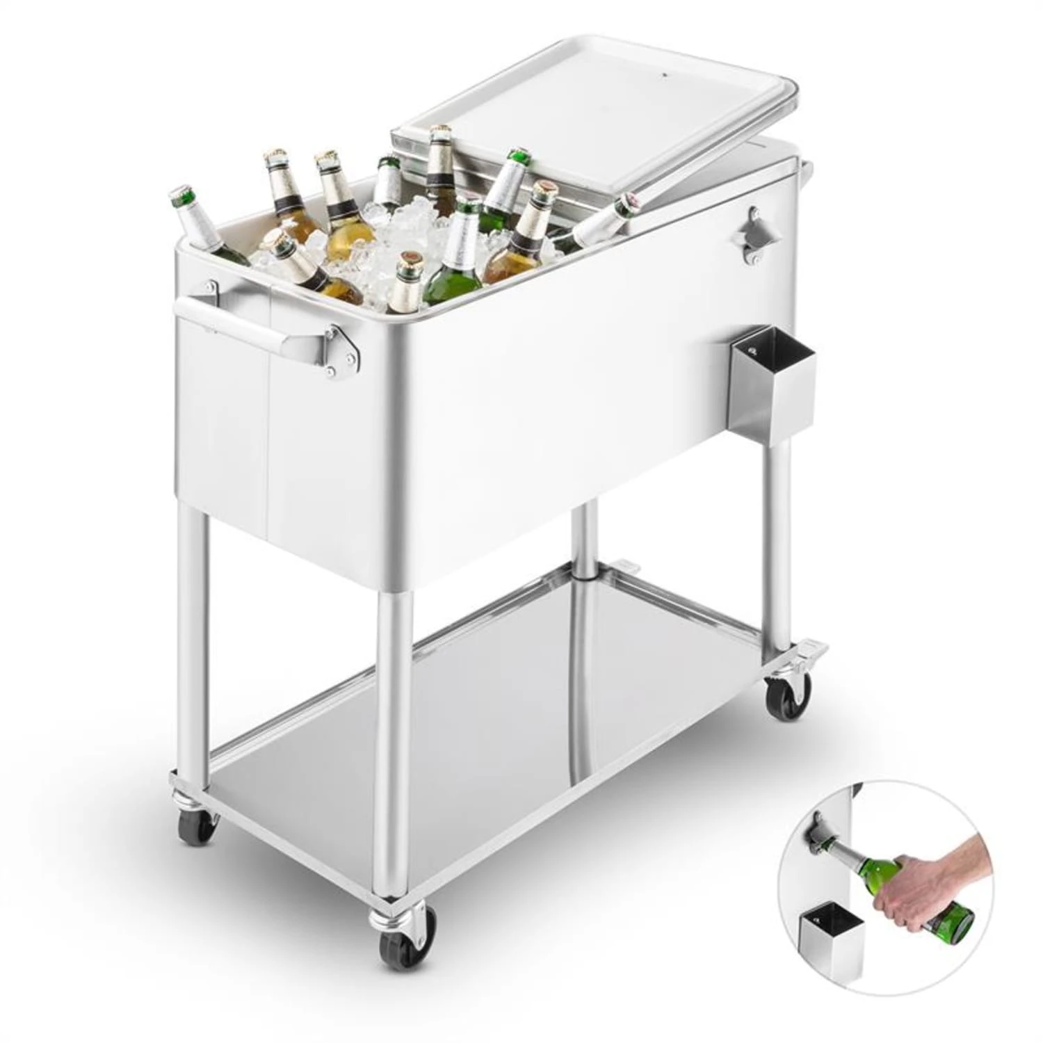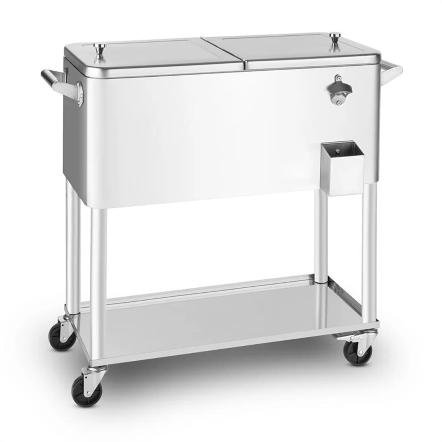 Der riesige, 80 Liter große Innenraum des Blumfeldt Springbreak Terrassenkühlwagens bietet mehr als genug Kaltgetränken Platz, um nicht nur die erste Halbzeit mit kühlem Kopf zu überstehen. Damit eignet er sich nicht nur zur Versorgung von kleinen Privatfeten, sondern auch zum gewerblichen Einsatz bei Caterings. Einfachen Zugriff in die isolierte Kühlbox ermöglichen zwei Deckelklappen,die Kälte drin und Hitze draußen halten. Mit leichtem Ruck trennt der integrierte Öffner Flaschen von ihren Kronkorken und deponiert die lästigen Metallteile direkt in seiner Auffangbox.