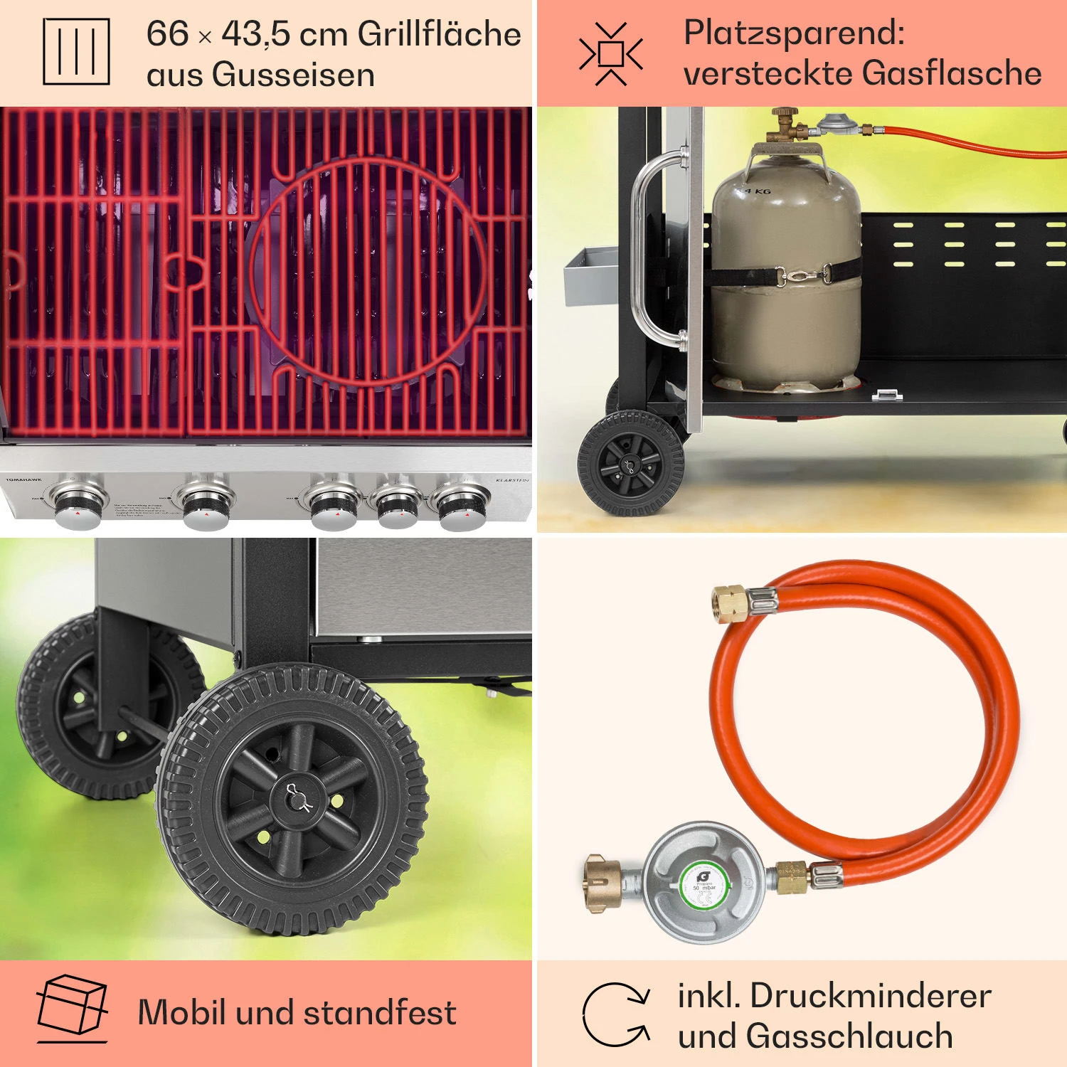 Tomahawk Gasgrill 4×3,6 KW + 2,7 KW Brenner 66×43,5 Cm Grill Edelstahl
