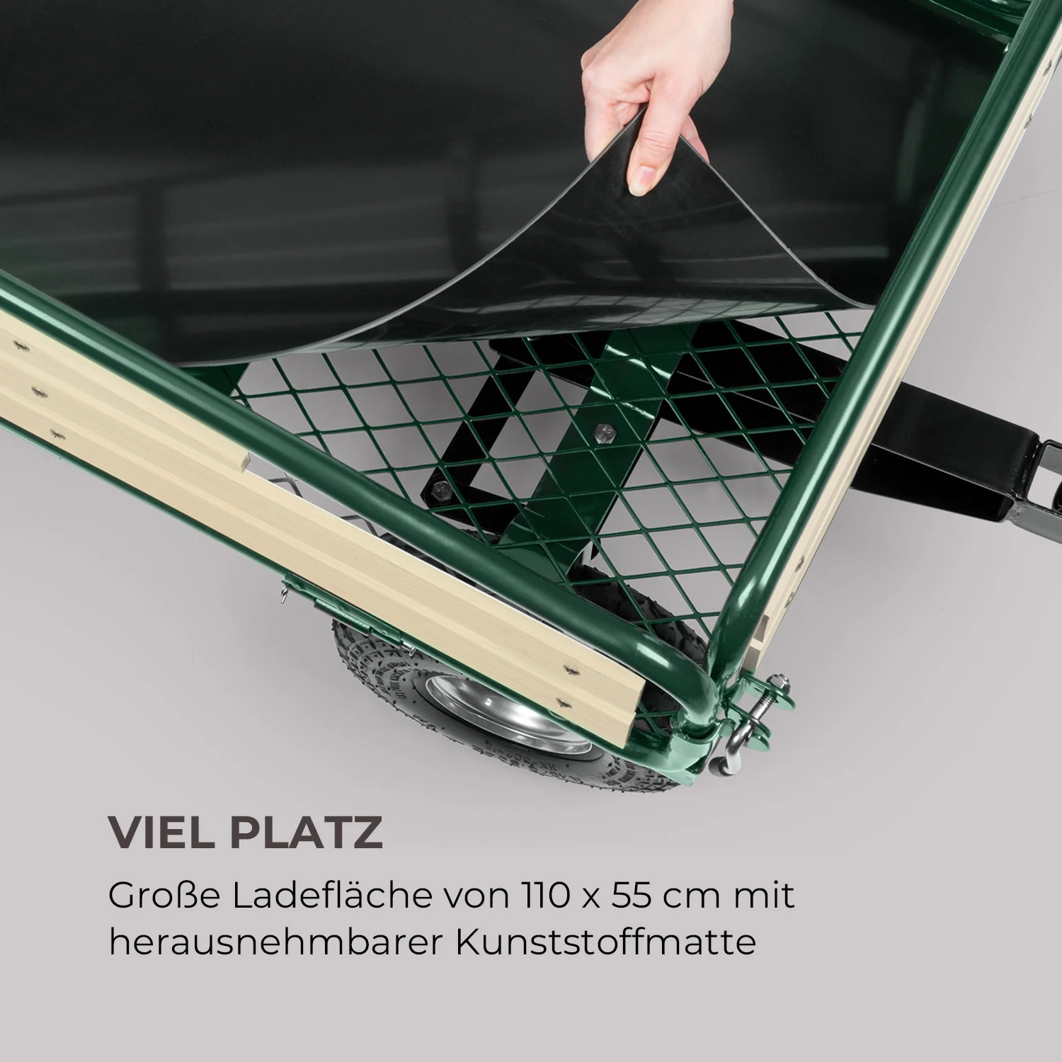 - große Ladefläche von 100 x 50 cm (LxB) mit 32-cm-hohen Seitenteilen