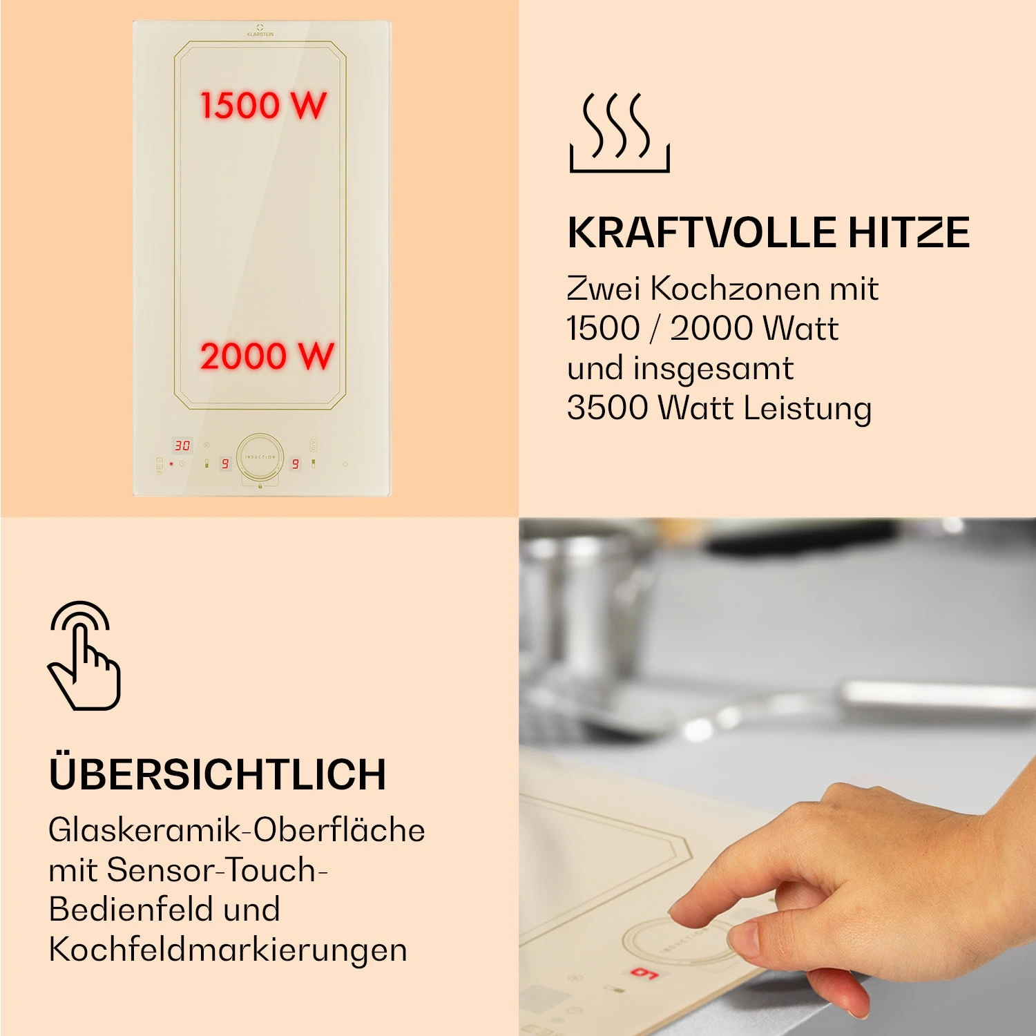 Victoria Domino Induktionskochfeld Einbau 3500W Flexzone Timer