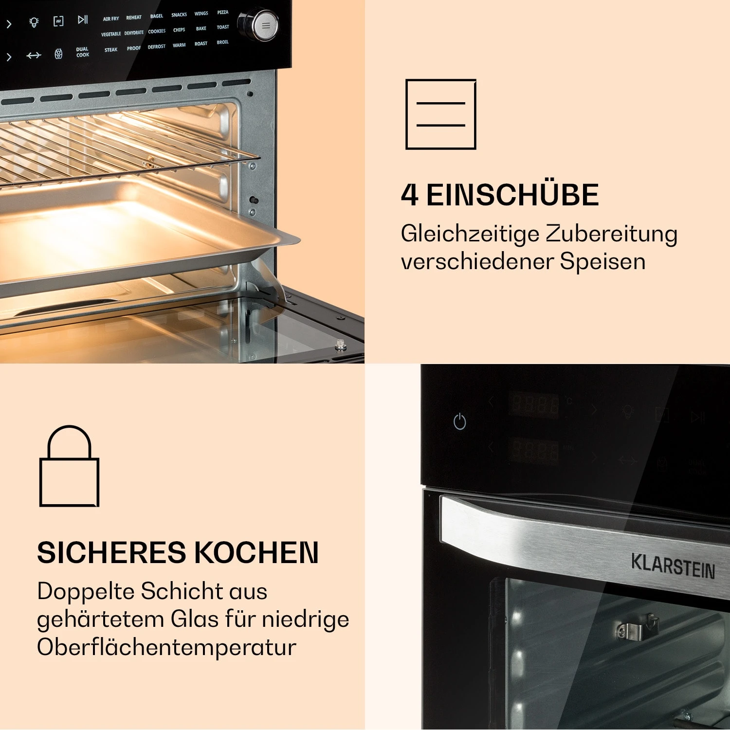 - 18 wählbare Programme sowie manuelle Garzeit- und Temperatureinstellung